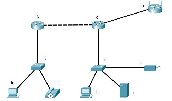 1. A, B, C, D, G (Routers, Switches and Wireless Router)